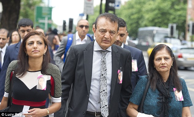 Семья Анни Девани покидает Вестминстерский магистратский суд в 2013 году. На фото слева направо сестра Анни Ами Денборг, ее отец Винод, ее брат Аниш Хиндоча (на заднем плане) ) и мать Нилам Хиндоча (справа)