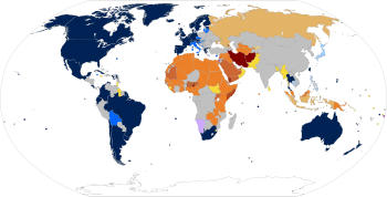 В настоящее время во многих государствах гомосексуальные отношения легализованы. Согласно отчёту ILGA за май 2013 года, уголовное преследование за гомосексуальные отношения, по-прежнему, сохраняется в 76 странах мира, в том числе, в пяти странах (Иран, Йемен, Мавритания, Саудовская Аравия и Судан), а также в некоторых регионах Нигера и Сомали гомосексуальные контакты караются смертной казнью. Положение в Ираке и Индии неясно[50].