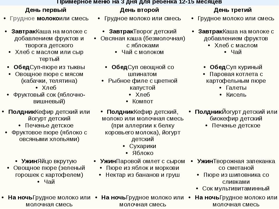 Рекомендуемый режим питания для детей 10-11 месяцев