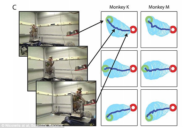 Когда обезьяны научились управлять креслом-коляской, просто думая, они стали более эффективно ориентироваться в направлении винограда и быстрее завершили испытания, сказал Николелис.