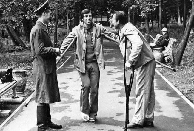 Появилось что-то вроде плена. Нигде, разумеется, не зафиксированного. Пункт первый- научиться ходить на костылях. Потом без них. Пункт третий – научиться бегать. Когда сняли гипс, стал заниматься с гантелями. Старался, с разрешения врачей, так нагрузить мышцы, как привыкли они работать в дни самых интенсивных тренировок.